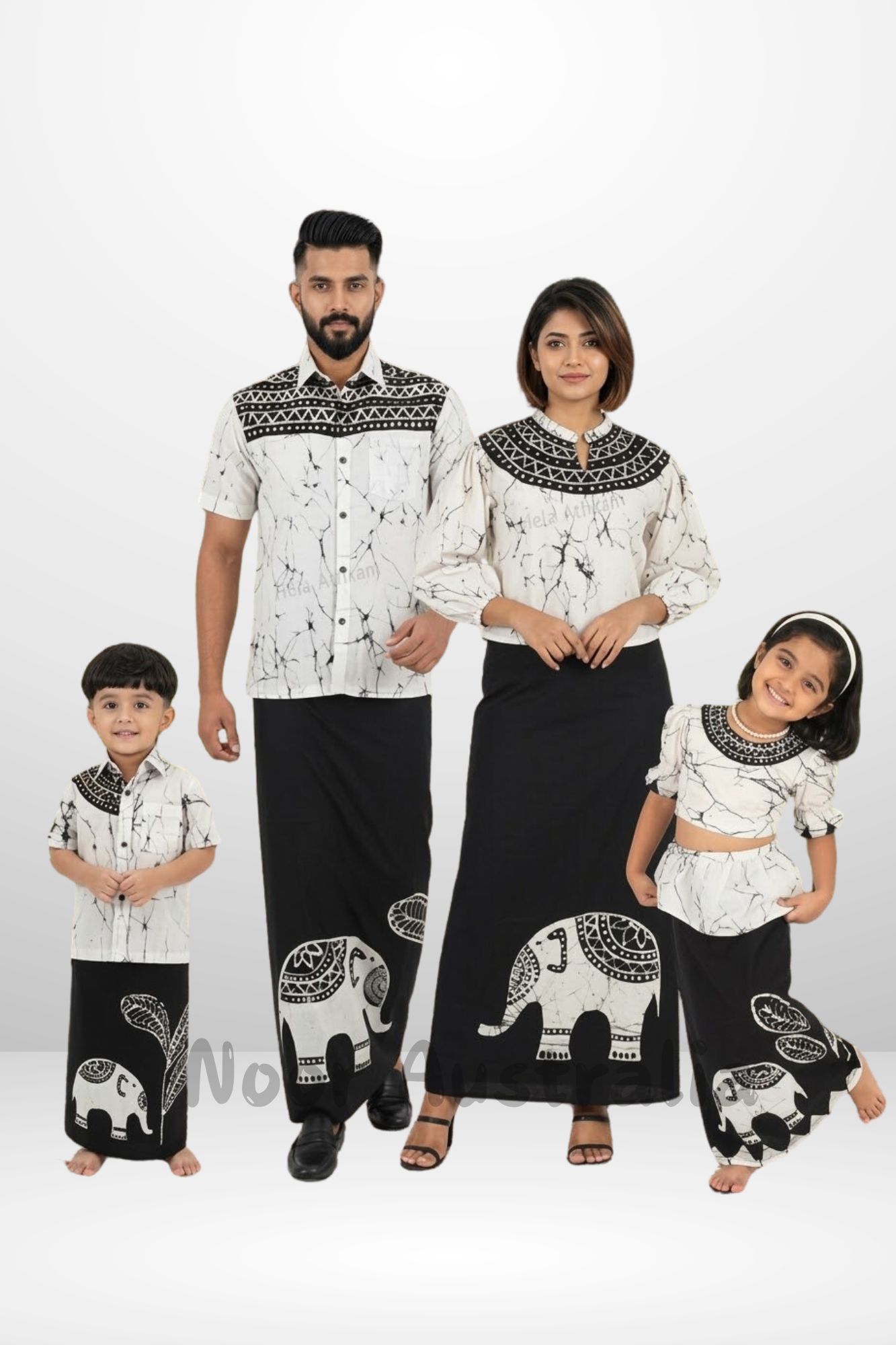 Celebrate togetherness in style with our Black & White Batik Collection! This beautifully handcrafted family set features a coordinated blend of Black & White batik designs, perfect for cultural events, festive gatherings, or memorable photoshoots. The men’s and boys’ sets include a classic white shirt paired with a comfortable batik sarong, while the women’s and girls’ outfits feature elegant.