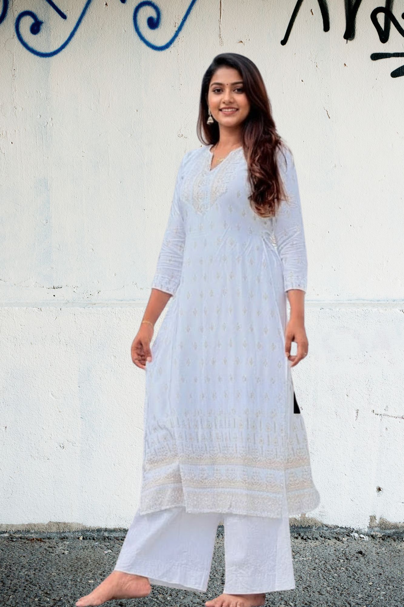 Elegance in White and Gold Kurta-Kit – NRMO409
