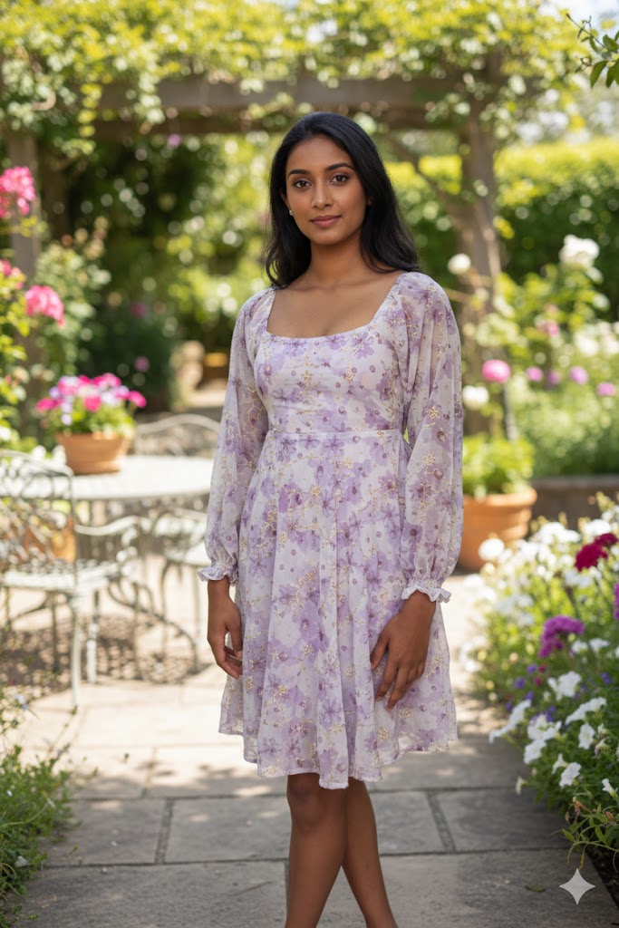 Experience effortless elegance in our Enchanting Lilac Bloom Dress. Designed with a flattering square neckline and delicate, full-length sheer bishop sleeves, this dress is perfect for any occasion where you want to feel beautiful and graceful.