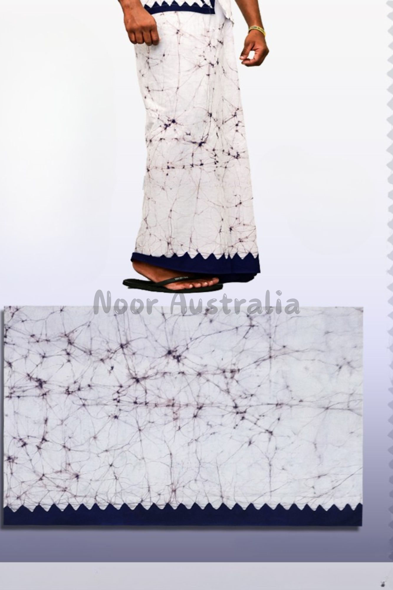 Feel relaxed and stylish in this soft white sarong with dark blue tie-dye lines and a beautiful scalloped border. Inspired by traditional designs, it’s perfect for warm days, beach outings, or casual wear. Easy to wrap, light to wear, and full of charm. . The intricate white detailing evokes the grace of petals in bloom, making it perfect for festive occasions, beachside strolls, or everyday sophistication.