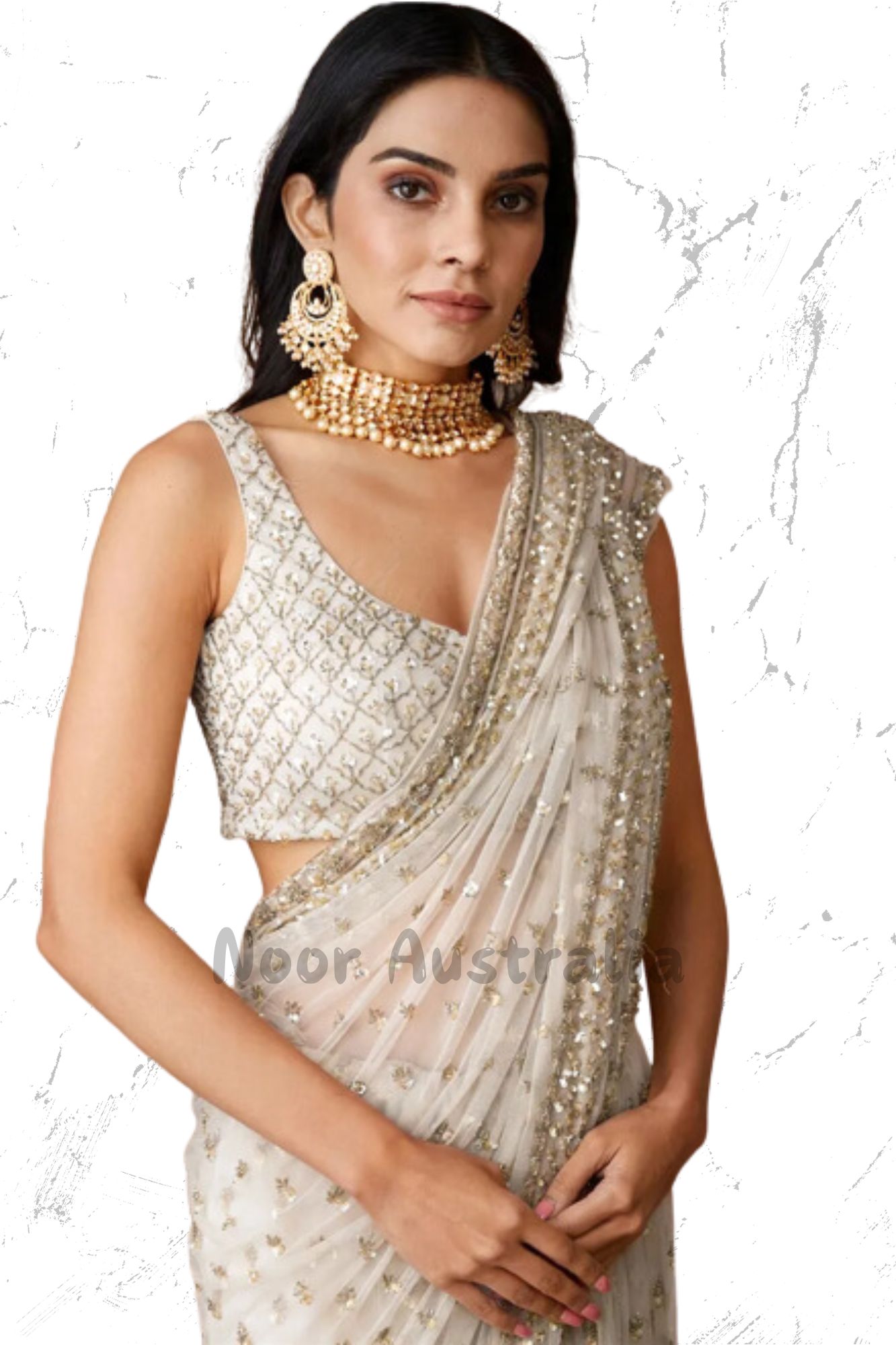 White and Off White color Saree